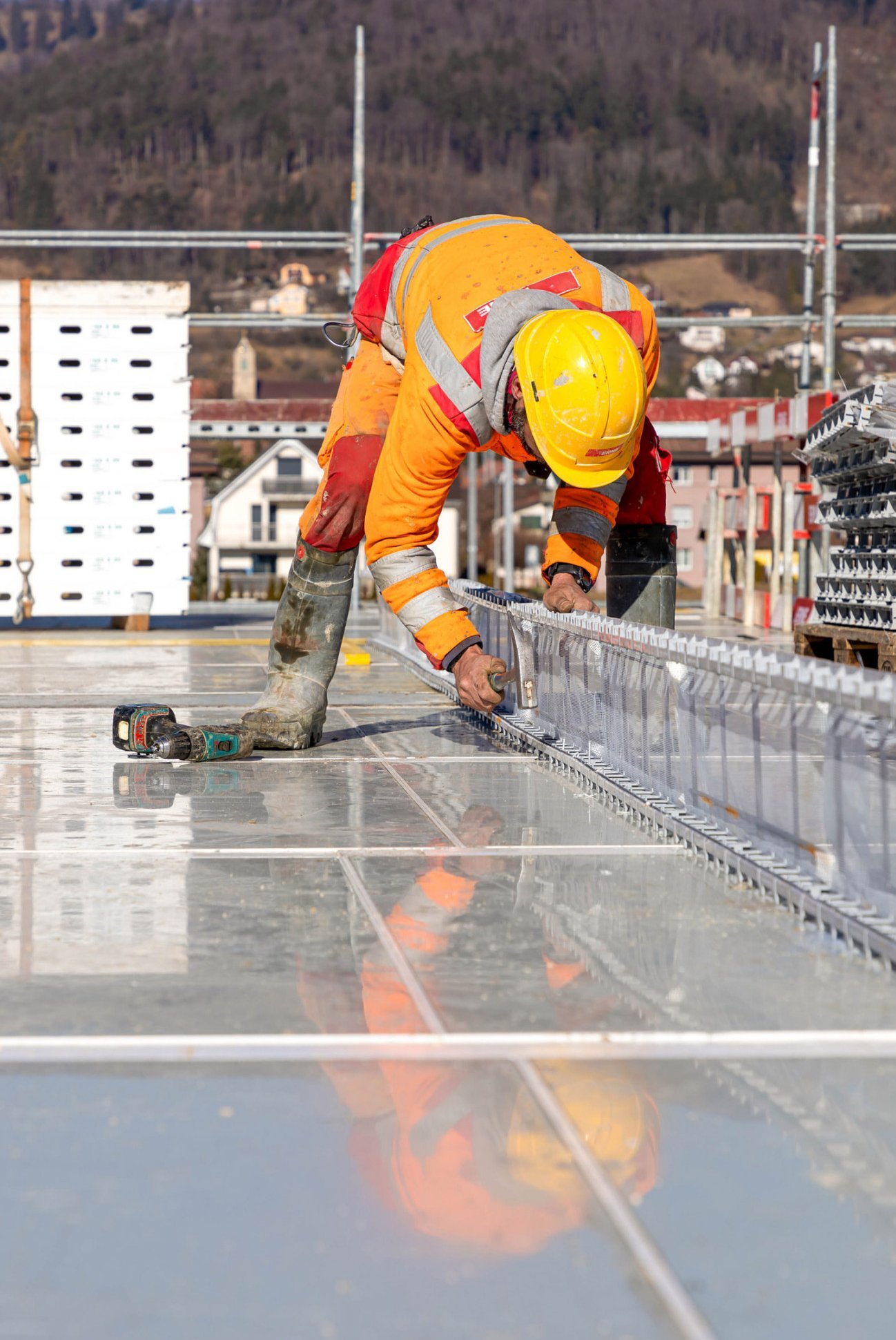 Mit dem Deckenfest wurde ein weiterer wichtiger Meilenstein beim Neubau des Dienstleistungscenters (DCO) der Meier Tobler AG in Oberbuchsiten erreicht. Die Taktbaustelle beeindruckte durch die sehr schnellen Prozesse woraus die enormen, temporeichen Arbeitsvorschritte resultierten. Die letzten Geschossdecken des imposanten, mehrgeschossigen Industriebaus (L: 232 x B: 62 x H: 24 m) wurden termingerecht fertiggestellt. Über Wochen wurde parallel auf vier Baufeldern gearbeitet und Bodenplatten, Decken, Brüstungen, Treppenhäuser, Liftschächte und Stützen versetzt und bis ins Dachgeschoss eingebracht. Mit der Deckenfest-Feier ging ein grosses Dankeschön an die operativen Teams vor Ort, welche tagtäglich mit grossem, persönlichem Einsatz, Engagement und Begeisterung den Baufortschritt vorantrieben. Gemeinsam mit Verantwortlichen der Meier Tobler AG, dem Generalplaner W+P Weber und Partner AG sowie den Mitarbeitenden der ERNE AG Bauunternehmung wurde der Anlass in gebührendem Rahmen gefeiert.