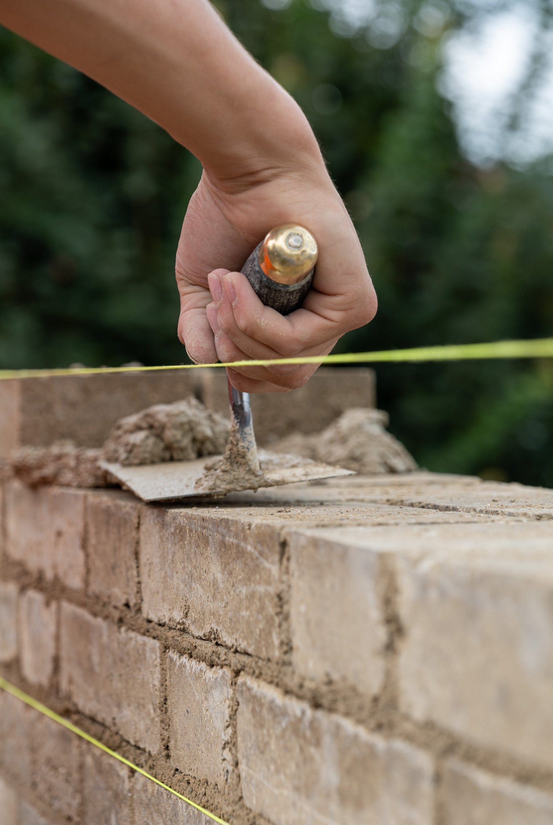 Das Material verhält sich beim Mauern komplett anders als herkömmlicher Mörtel. Wir mussten uns dafür zuerst eine angepasste Verarbeitungs-Technik aneignen. Der Vorteil des Materials ist, dass es jederzeit mit Wasser löslich und noch Stunden später bearbeitbar ist.