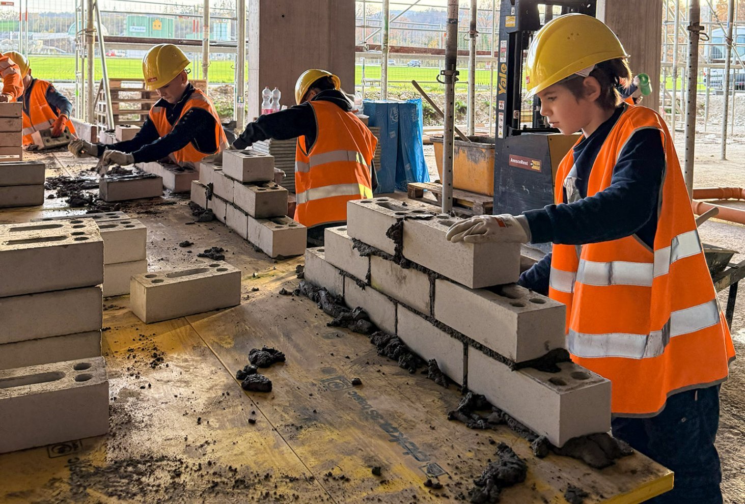 Frisch gestärkt aus der Mittagspause machten sich alle auf zum Postenlauf: Vom Mauern übers Armieren bis hin zum Zusammenstecken von Kanalisationsleitungen – überall durften die Kinder selbst aktiv werden, ausprobieren und gemeinsam Erfolge feiern.