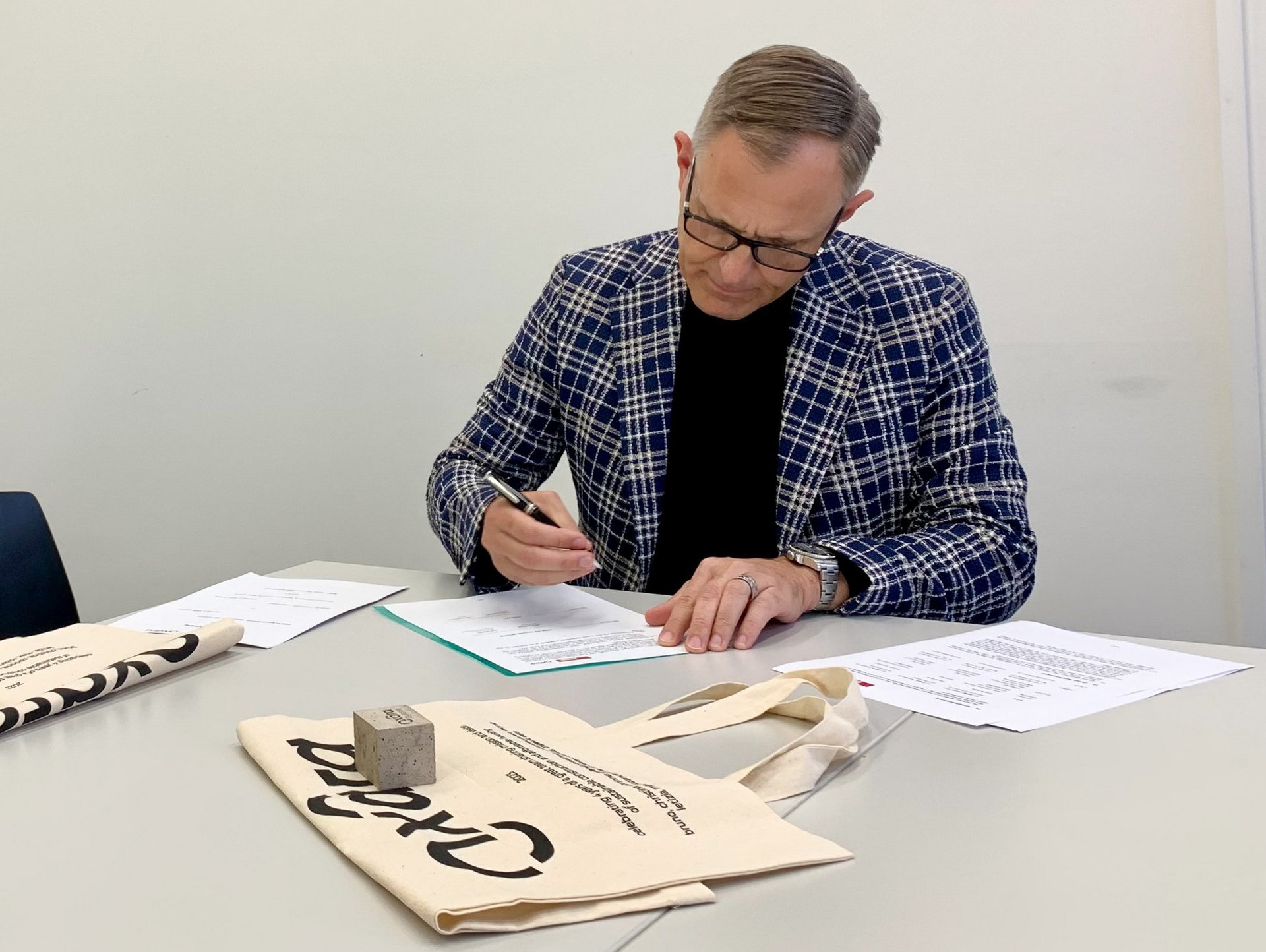 Anfang Mai 2024 unterzeichneten die Oxara AG und die ERNE AG Bauunternehmung die Absichtserklärung für eine partnerschaftliche Zusammenarbeit. Dieser Moment markiert den Beginn eines gemeinsamen Weges mit dem Ziel, unter Einsatz der vereinten Ressourcen und des kollektiven Knowhows Baustoffe auf Lehmbasis zu entwickeln.