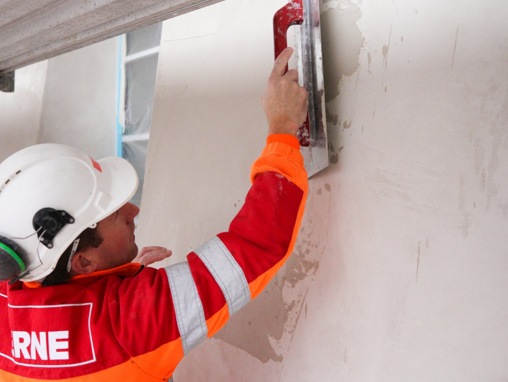 Das Pfarrhaus Laufenburg ist ein historisches Gebäude und steht unter Denkmalschutz. Die ERNE Kundenmaurer sanierten die Westfassade des Gebäudes im Auftrag des Pfarramts Laufenburg und bereiteten der Fassade eine glatte Optik. Da die Fassade alt und auch denkmalgeschützt ist, konnten die Arbeiten nicht maschinell verrichtet werden. So wurden sie manuell durch die Maurer des ERNE Bauservice erledigt. Hierbei kamen in einem ersten Schritt erst zwei und danach acht Maurer zum Einsatz.