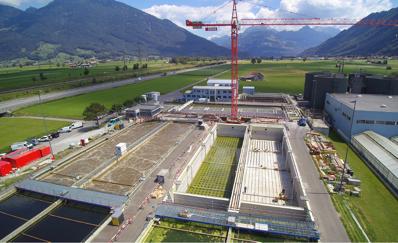 Sanierung und Ausbau der Kläranlage Glarnerland in 2 Bauetappen.