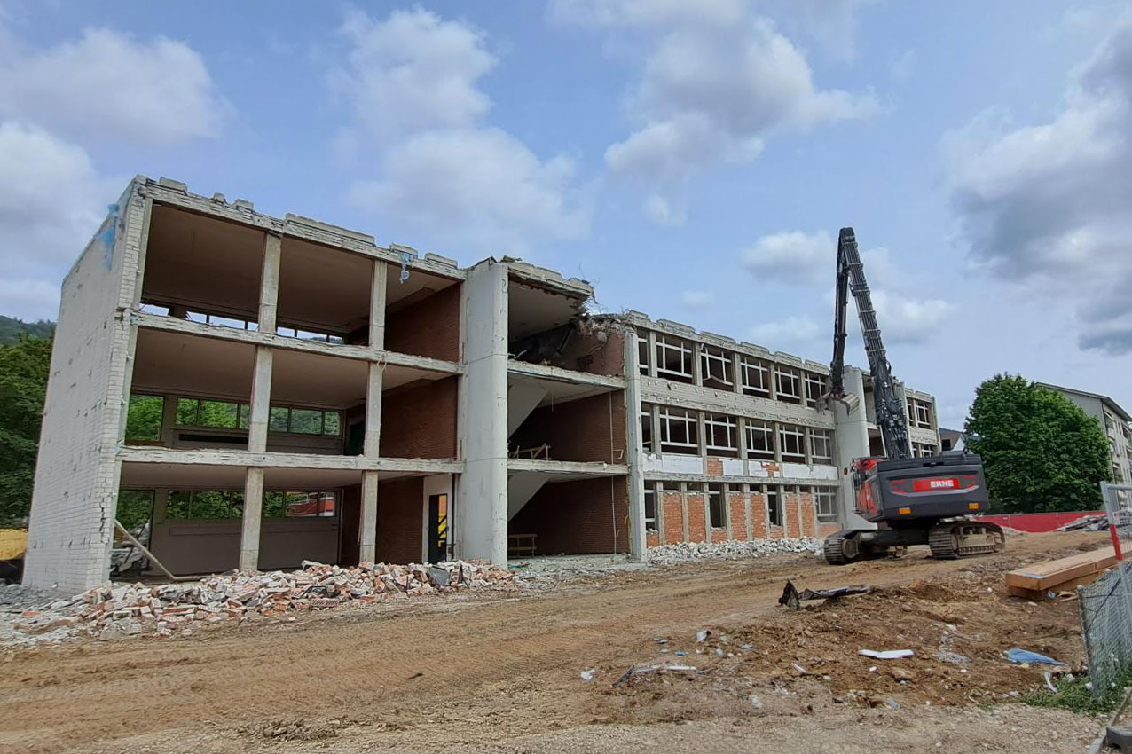 Rückbauarbeiten für den späteren Neubau des Mühlemattschulhauses in Egerkingen.