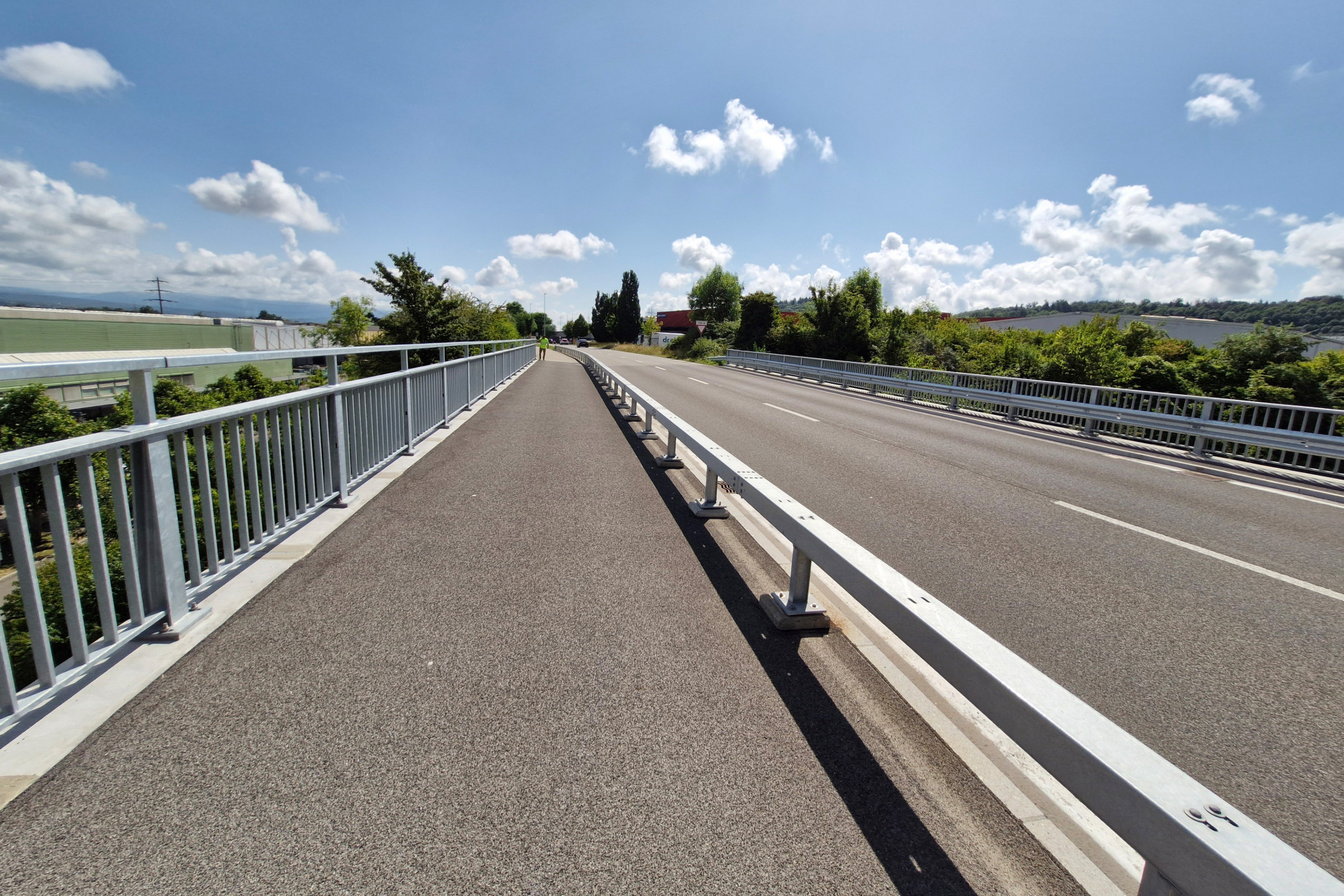 Sanierung einer Stahlbetonbrücke in Kaiseraugst. Unsere Hauptarbeiten: Abbruch PBD-Abdichtung, Abschlüsse, Brückeneinlauf. Einrichten temporäre Verkehrsführung. Betoninstandsetzung, Betonabtrag und Entfernen Beschichtungen mit HDW, Freilegen Bewehrung, Korrosionsschutz, Auftrag Reprofiliermörtel, Flächenspachtelung, Imprägnieren/Hydrophobieren, Bauwerksabdichtung mit PBD, Verkehrswegebau mit Erstellen Fundation, Pflästerungen/Abschlüsse, Belagsarbeiten, Kanalisation und Entwässerung, Ortbetonbau, Montage Geländer, Strassenmarkierungen.