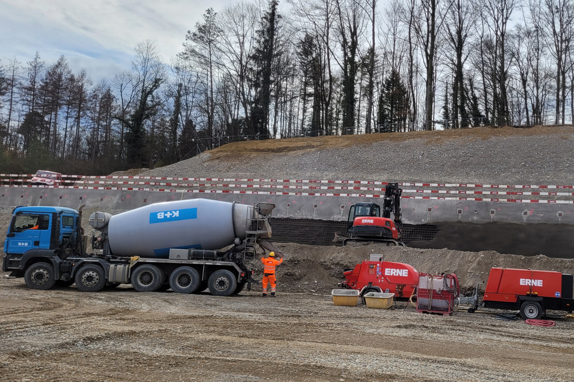 Baugrubenaushub für den nachfolgenden Ausbau der ARA Kaisten. Unsere Hauptleistungen: Bodenabtrag (Abhumusieren) unter Umweltbaubegleitung (UBB), Baugrubenaushub ca. 36'000 m3, Baugrubensicherung mittels Nagelwand sowie Hinterfüllungen. Die Arbeiten für die Baugrube sind bereits abgeschlossen. Die Hinterfüllungsarbeiten erfolgen ca. Januar/Februar 2026. Arbeitsausführung während laufendem Betrieb der ARA.