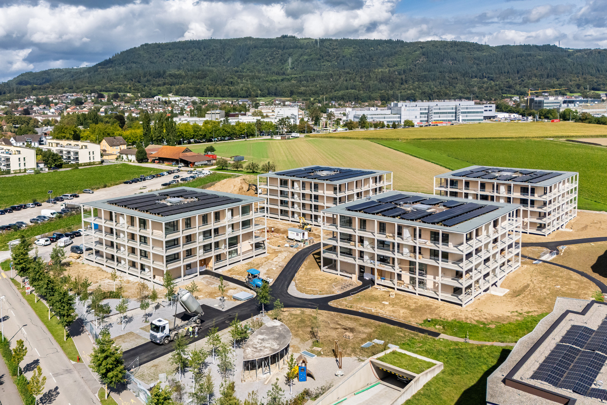 Wohnüberbauung mit vier Wohnbauten (total 76 Wohnungen) inkl. Autoeinstellhalle. Gebäude viergeschossig, im Minergie-P Standard konzipiert. Unsere Hauptleistungen: Baugrubenaushub und Erdbau, Werkleitungs- und Kanalisationsbau, Ortbetonbau, Sichtbetonarbeiten (Deckenuntersichten Wohnungen und Laubengang, Fassadenstützen und Unterzüge, Treppenauge rund, inkl. Abschalungen), Mauerwerk (Aussenwände massiv in Backstein 1.-3. OG, Zwischenwände UG mit Kalksandstein), Herstellen und Einbau von vorgefertigten Betonteilen sowie Erstellen von Hartbetonbelägen.