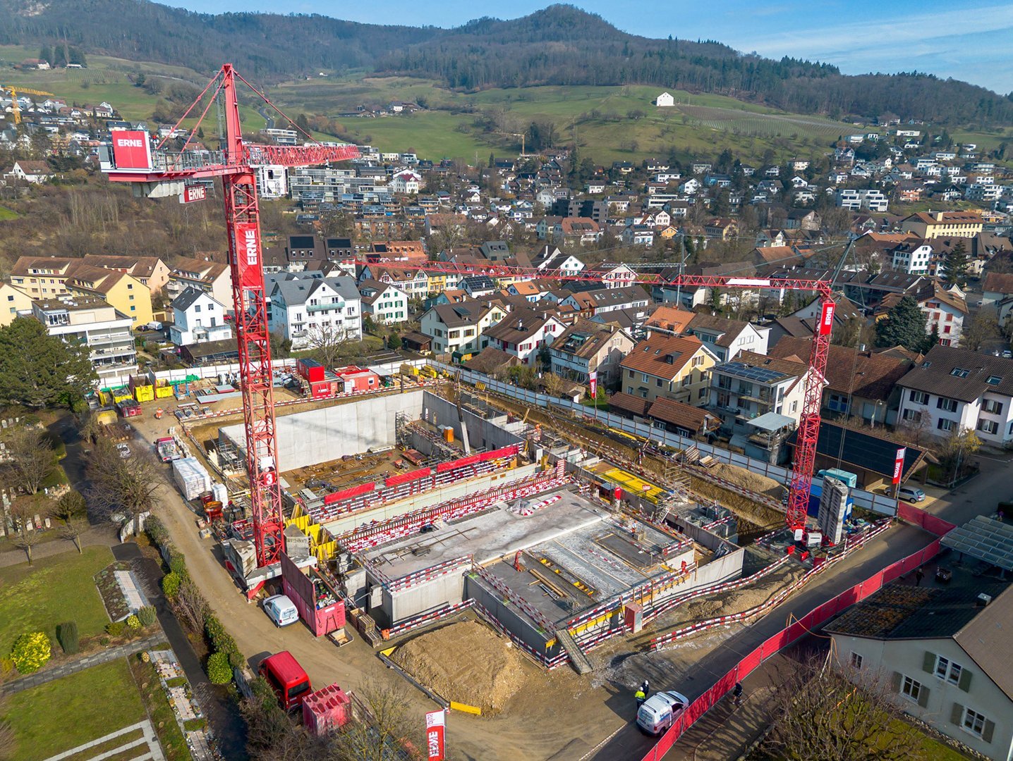 Die Dreifachsporthalle in Sissach wird von ERNEplus als Totalunternehmer realisiert und überzeugte die Jury eines Gesamtleistungswettbewerbs insbesondere durch den geringen ökologischen Fussabdruck und die Einsparung von Landreserven. Ein besonderes Augenmerk des Baus liegt auf der nachhaltigen Bauweise: Das Design der Architekten Penzel Valier AG sieht vor, dass ein Grossteil der Halle im Erdreich eingebettet wird. Dadurch entsteht auf dem eigentlichen Hallendach Raum für einen Allwetterplatz und die oberirdische Fläche bleibt frei, um den grünen Charakter des Areals zu bewahren. Als Totalunternehmer übernimmt ERNEplus die Koordination aller am Bau beteiligten Gewerke und sorgt dafür, dass sämtliche Arbeiten reibungslos ineinandergreifen. Die enge Zusammenarbeit zwischen den Fachplanern und Bauunternehmen stellt sicher, dass das Projekt termingerecht und in höchster Qualität realisiert wird.