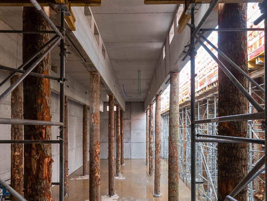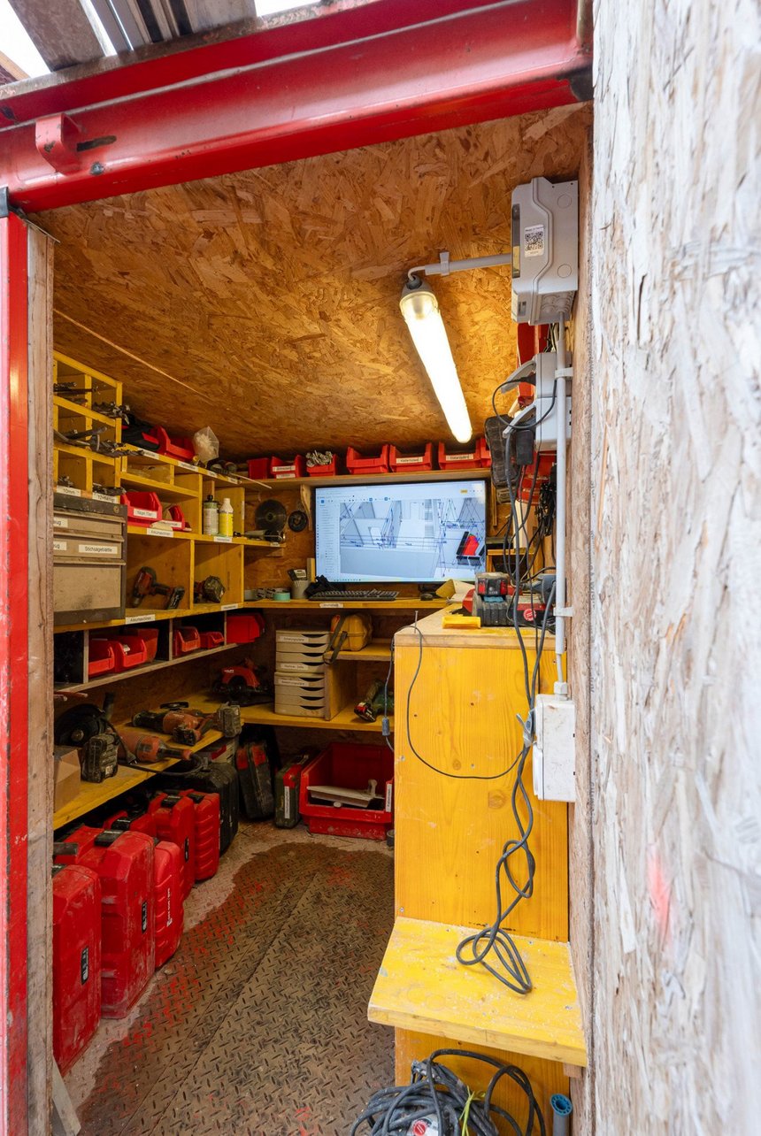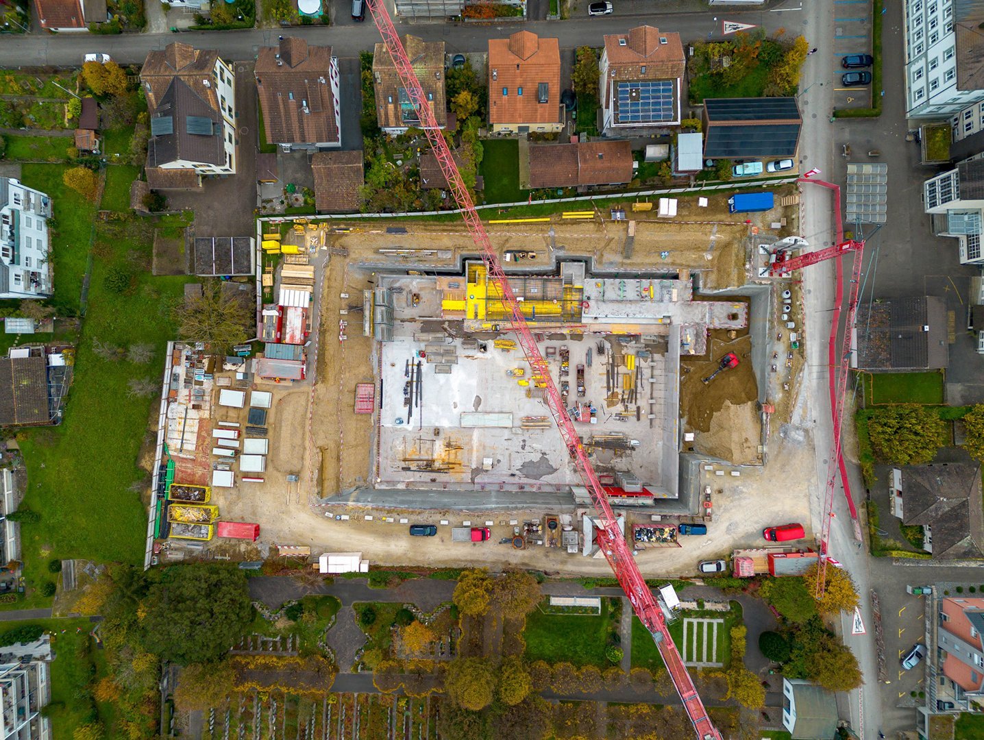 Auf der Baustelle werden die digitalen Daten unmittelbar in die Ausführung integriert. Die Bagger für die Aushubarbeiten waren mit einem Tablet im Führerstand ausgestattet, wodurch der Fahrer mittels Positionsdaten von Satelliten die exakte Position der Schaufel sah. Alle Werte wie auch das Aushubvolumen von 21'000 Kubikmeter sind für alle Projektbeteiligten jederzeit verfügbar. Die neun Meter tiefe Baugrube wurde mit Spezialtiefbaumassnahmen wie Nagelwänden und Spritzbeton gesichert.