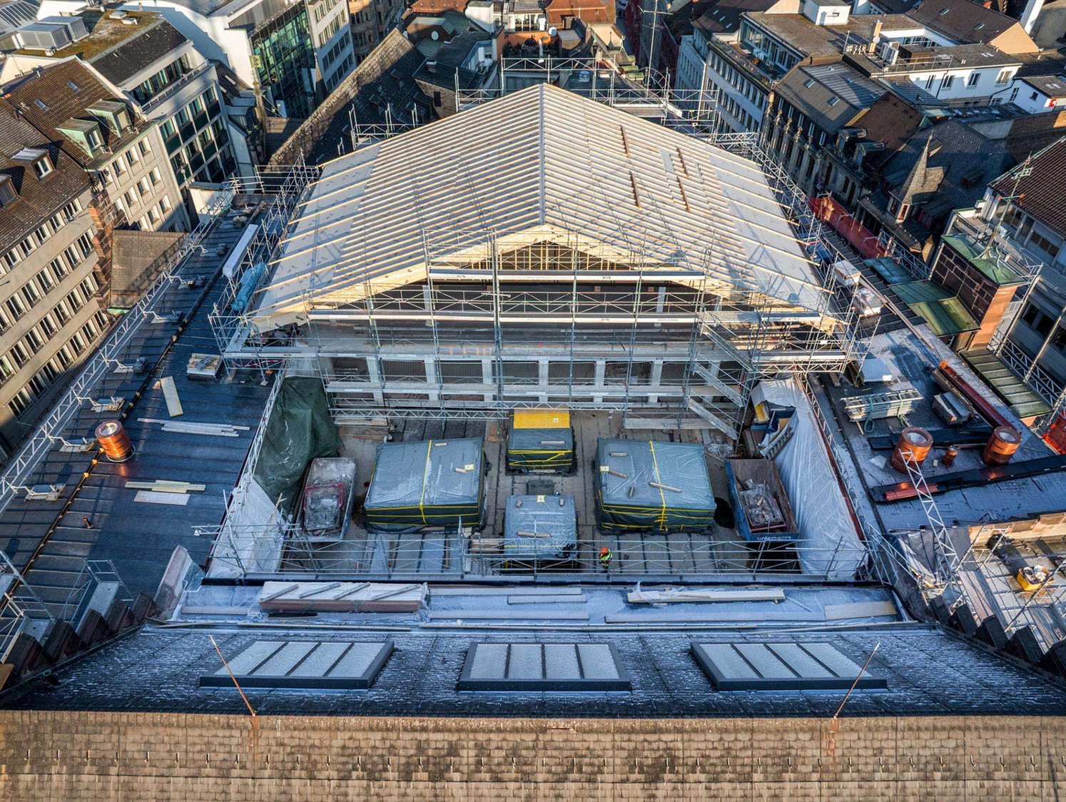 Derzeit arbeitet das Team von ERNE an neuen Dächern an der Gerbergasse, während bald auch die Dächer an der Freienstrasse folgen. Besonders diffizil ist das geplante Patiodach, bei dem ERNE als Baumeister zusammen mit Spezialisten für Stahlbau und HUSNER als Zimmermann anspruchsvolle Arbeiten in 25 Metern Höhe durchführen wird.